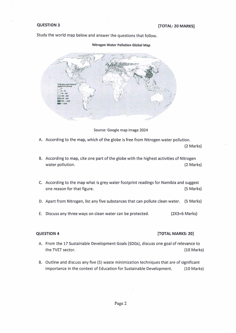 A. According to the map, which of the globe is free from Nitrogen water pollution.