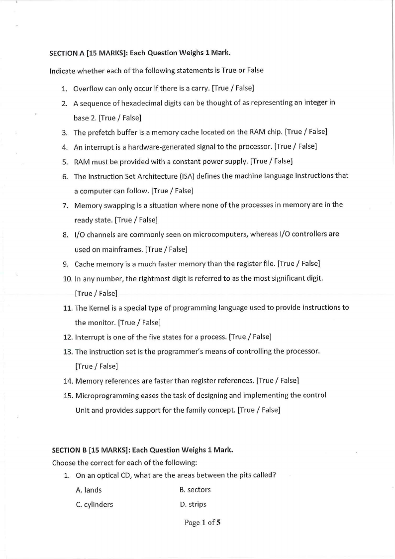 SECTION B [15 MARKS]: Each Question Weighs 1 Mark.