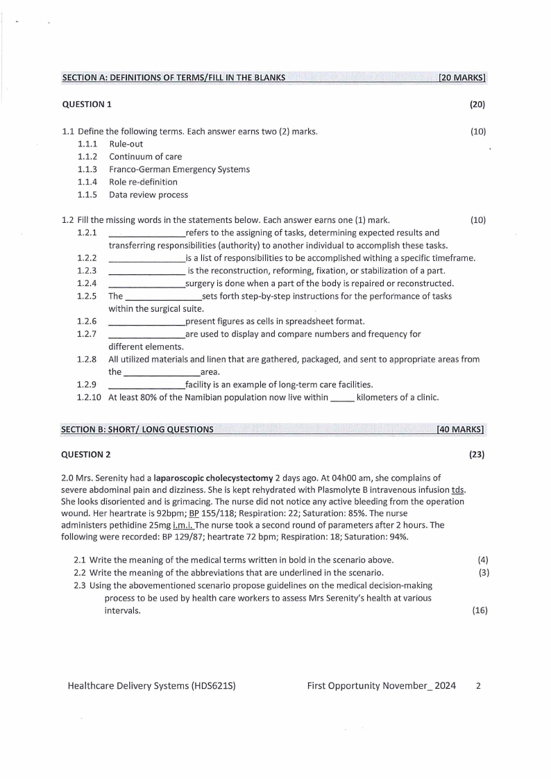 SECTION A: DEFINITIONS OF TERMS/FILL IN THE BLANKS