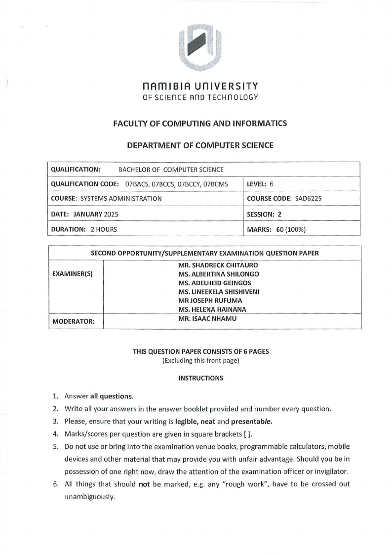SAD622S - SYSTEMS ADMINISTRATION - 2ND OPP - JAN 2025 |