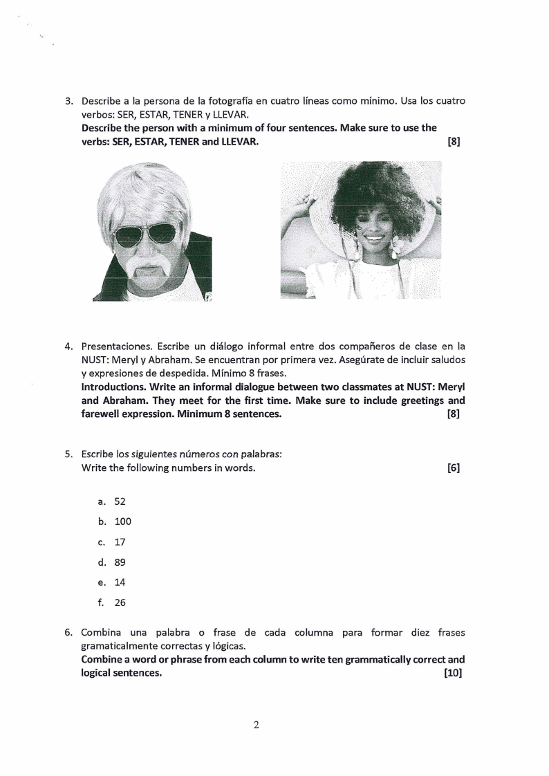 11. Escribe un texto de un minimo de 10 frases en espanol. Describe brevemente a dos