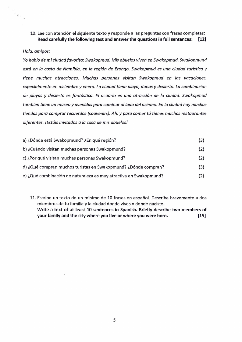 Yo hab/o de mi ciudad favorita: Swakopmud. Mis abue/os viven en Swakopmud. Swakopmund