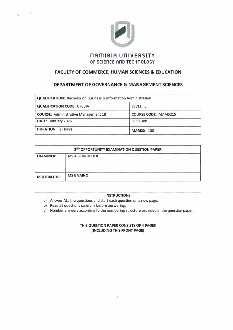 5.3 Outline your responsibilities during Mr Chimhundu's absence from work.