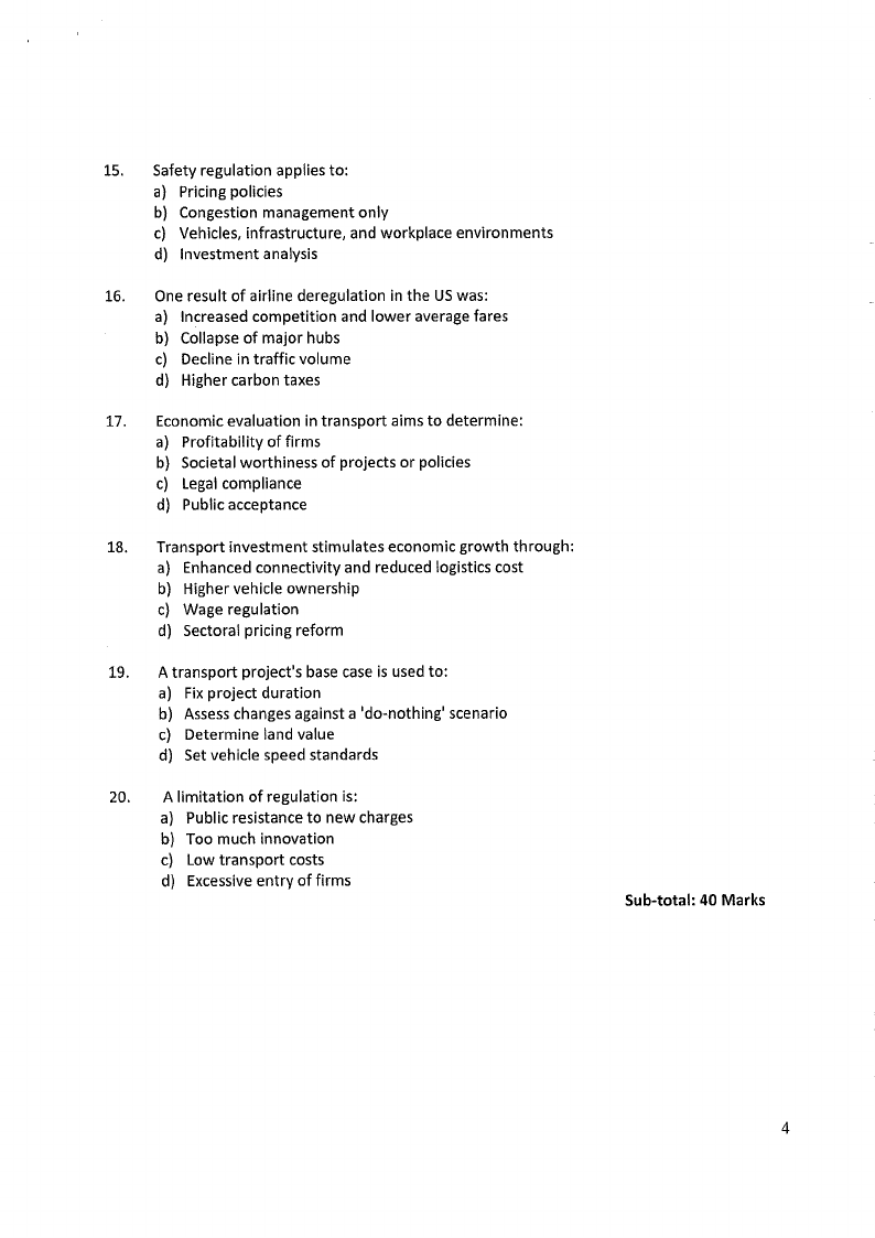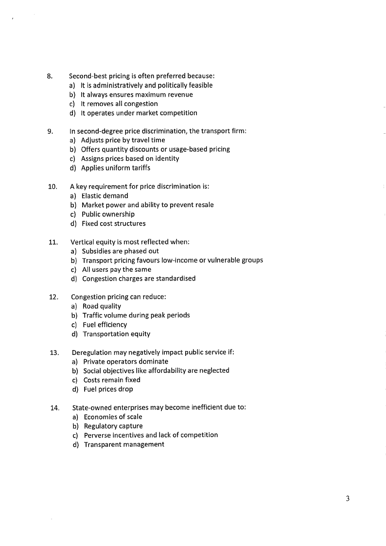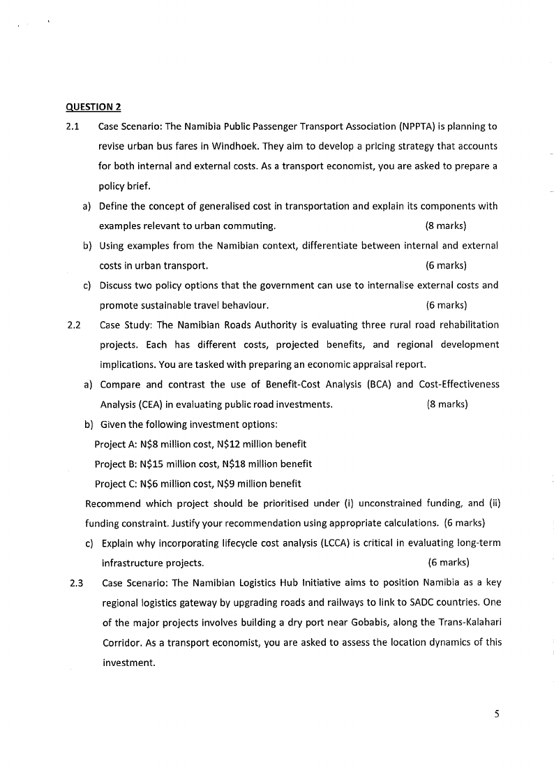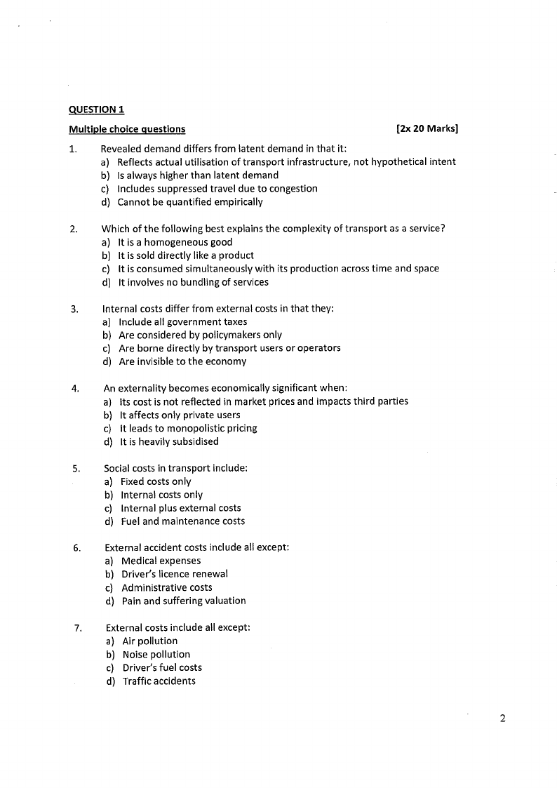 for both internal and external costs. As a transport economist, you are asked to prepare a