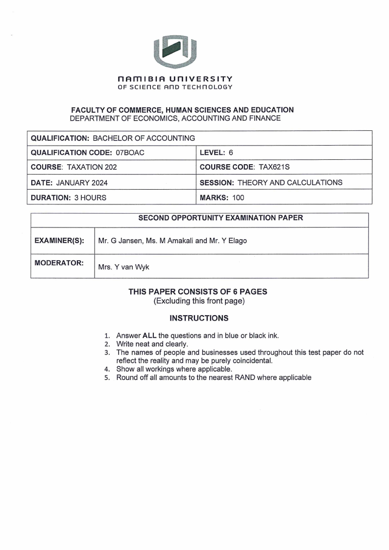 TAX621S- TAXATION 202- 2ND OPP- NOV 2023
