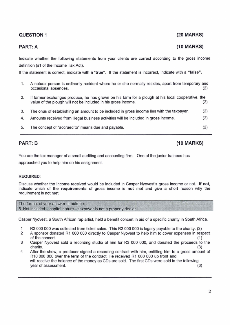 1 R2 000 000 was collected from ticket sales. This R2 000 000 is legally payable to the charity. (3)
