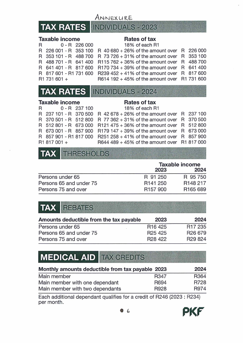 Each additional dependant qualifies for a credit of R246 (2023 : R234)