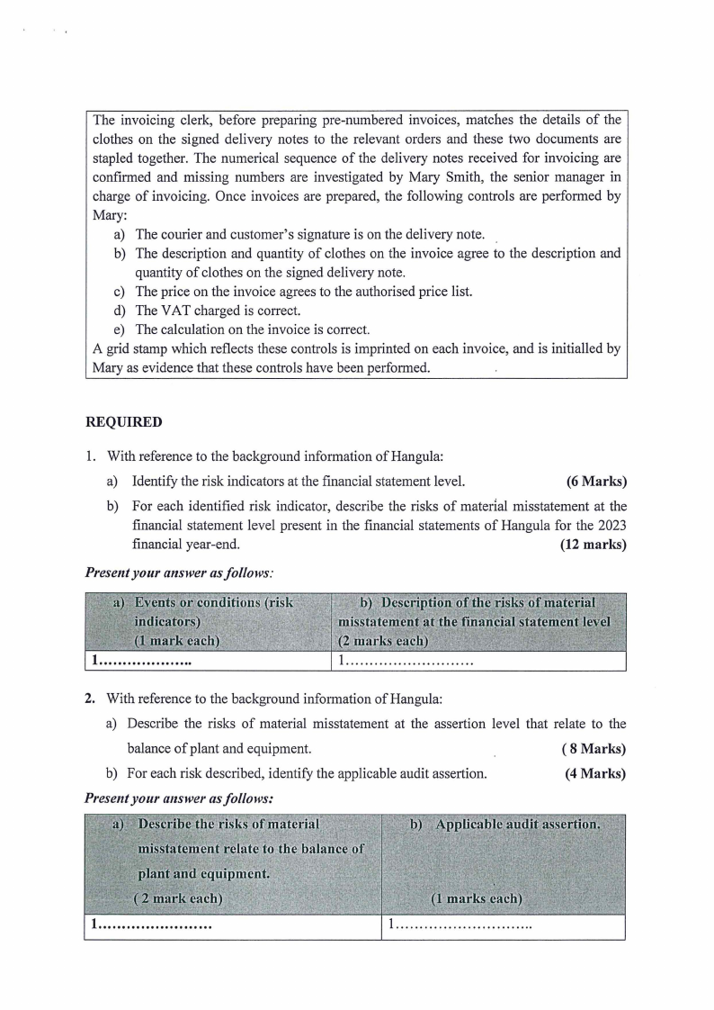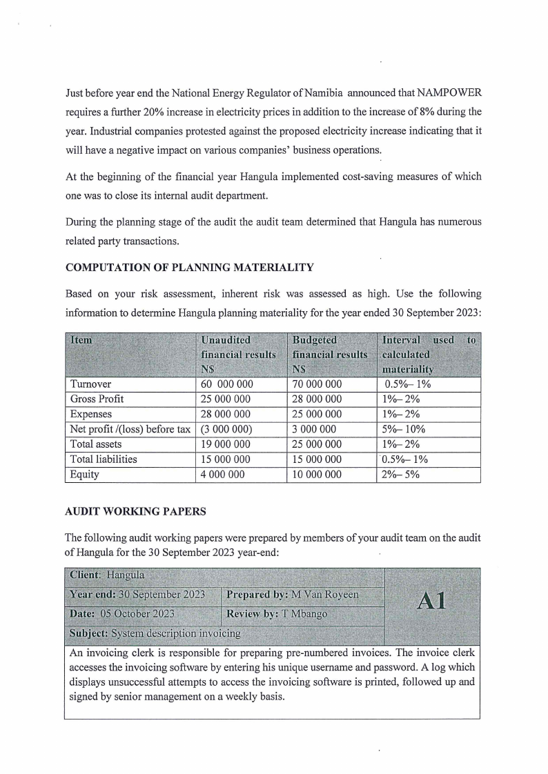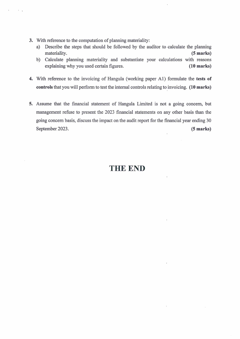 You are a member of the audit team perfo1ming the 30 September 2023 year-end audit of