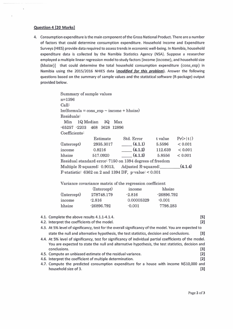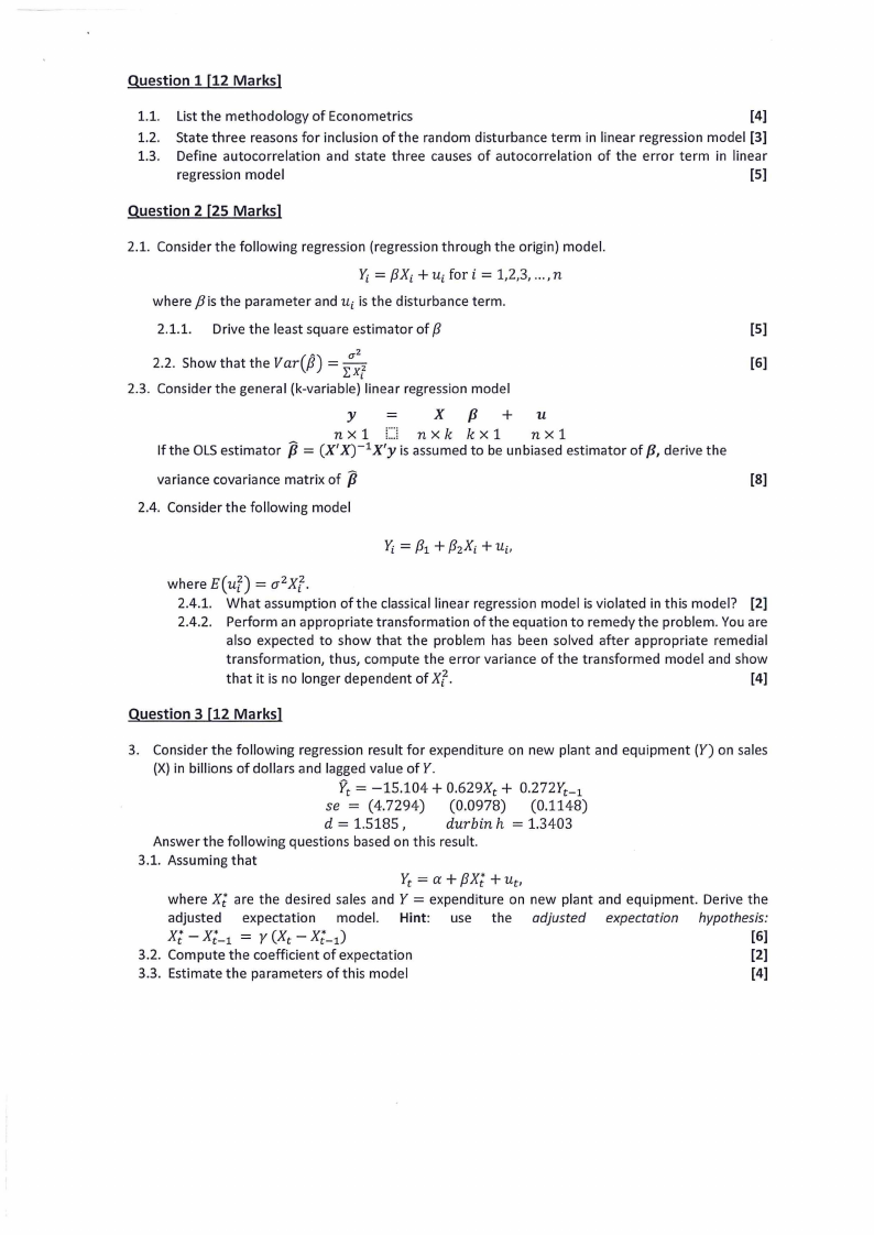 1.2. State three reasons for inclusion of the random disturbance term in linear regression model [3]
