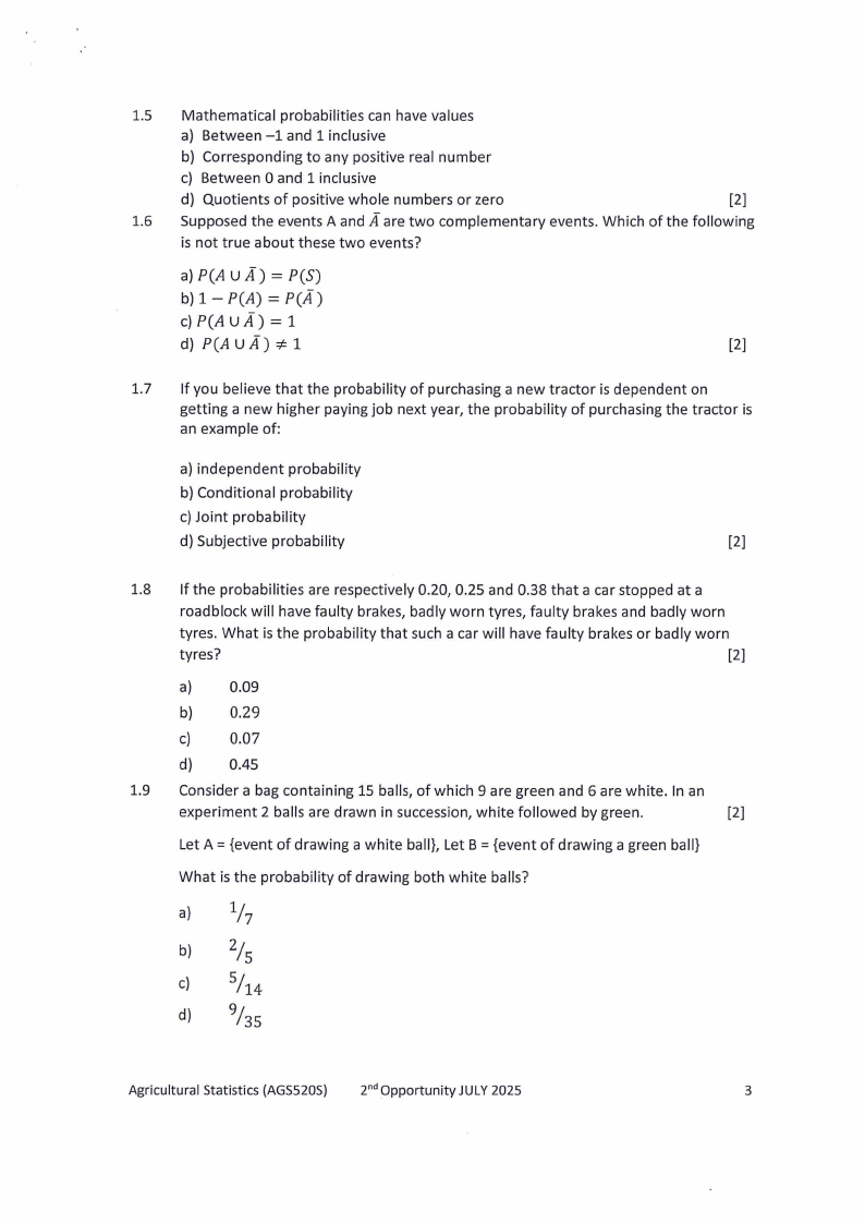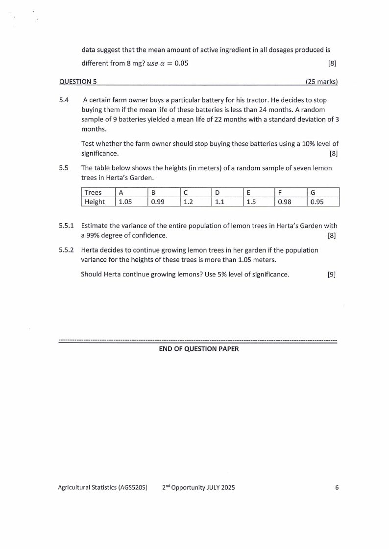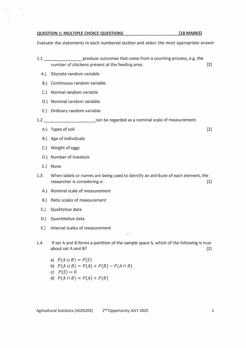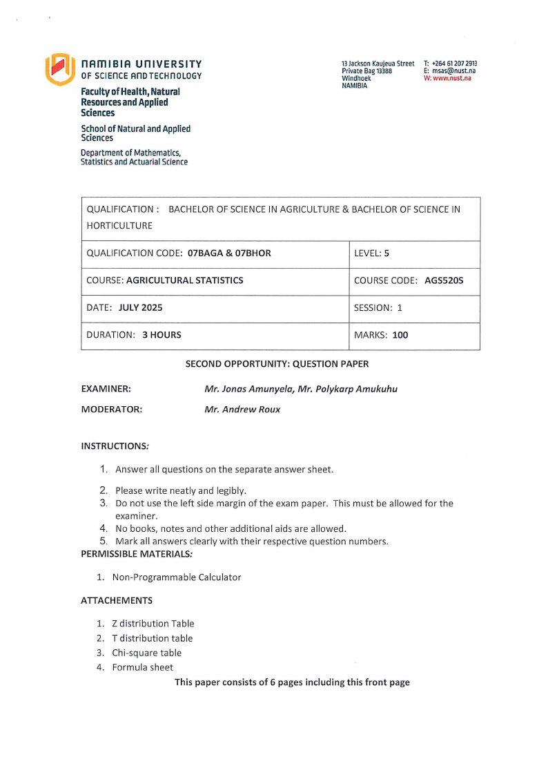 AGS520S - AGRICULTURAL STATISTICS - 2ND OPP - JUNE 2025 |