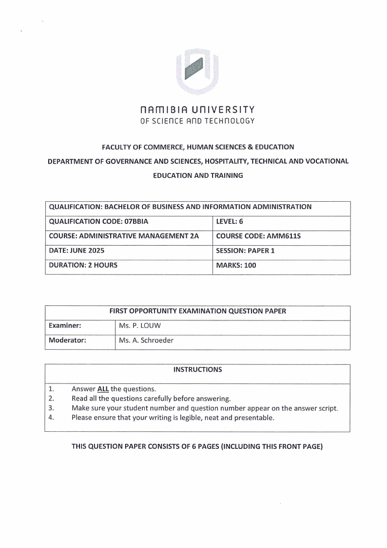 AMM611S - ADMINISTRATIVE MANAGEMENT 2A - 1ST OPP - JUNE 2025 |