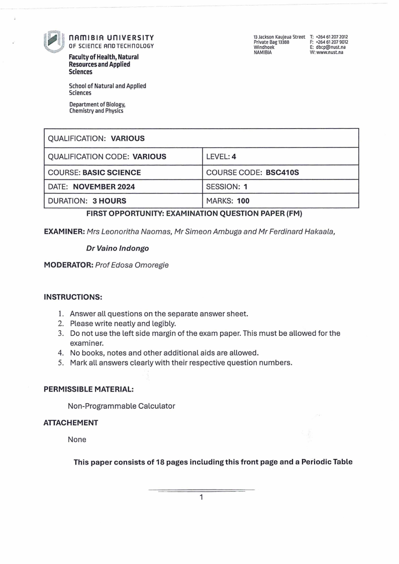 BSC410S - BASIC SCIENCE - 1ST OPP - NOVEMBER 2025 |