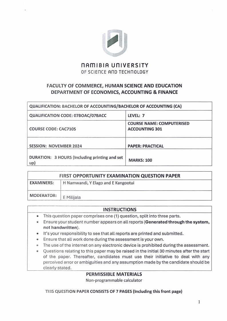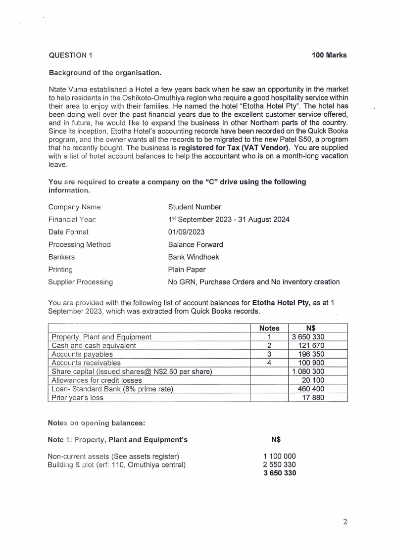 Since its inception, Etotha Hotel's accounting records have been recorded on the Quick Books