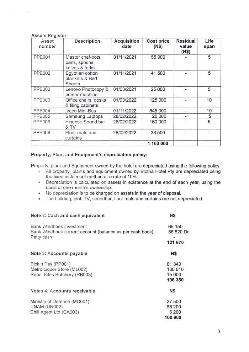 You are provided with the following list of account balances for Etotha Hotel Pty, as at 1