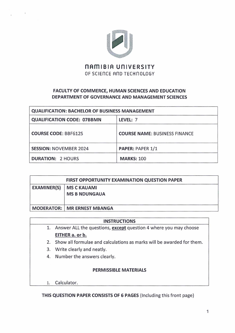 BBF612S - BUSINESS FINANCE - 1ST OPP - NOV 2024