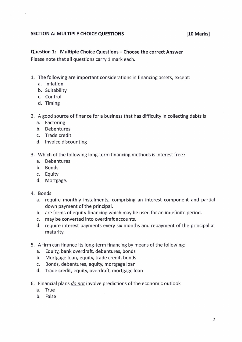 SECTION A: MULTIPLE CHOICE QUESTIONS