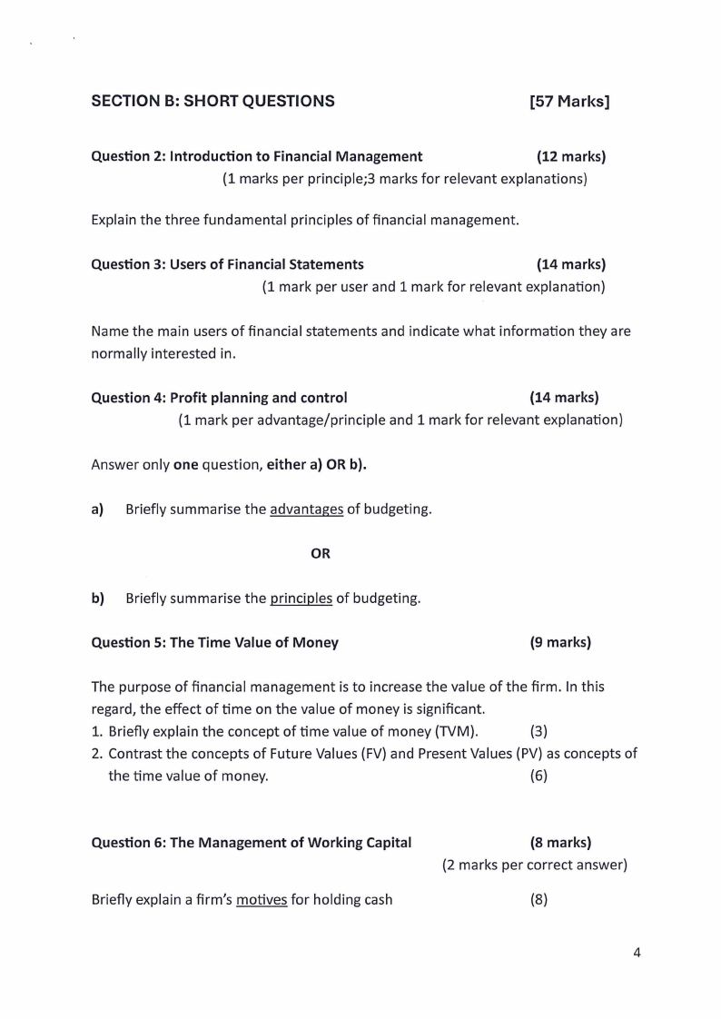 SECTION B: SHORT QUESTIONS