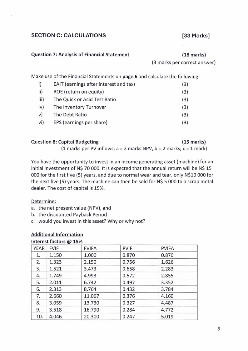 the next five (5) years. The machine can then be sold for N$ 5 000 to a scrap metal