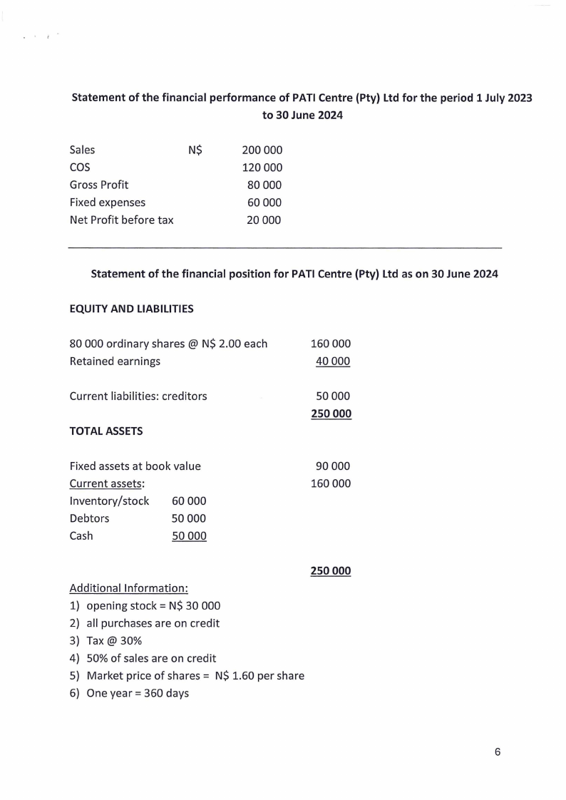5) Market price of shares= N$ 1.60 per share