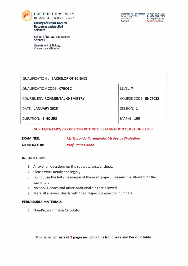 Environmental Chemistry (ENC702S}