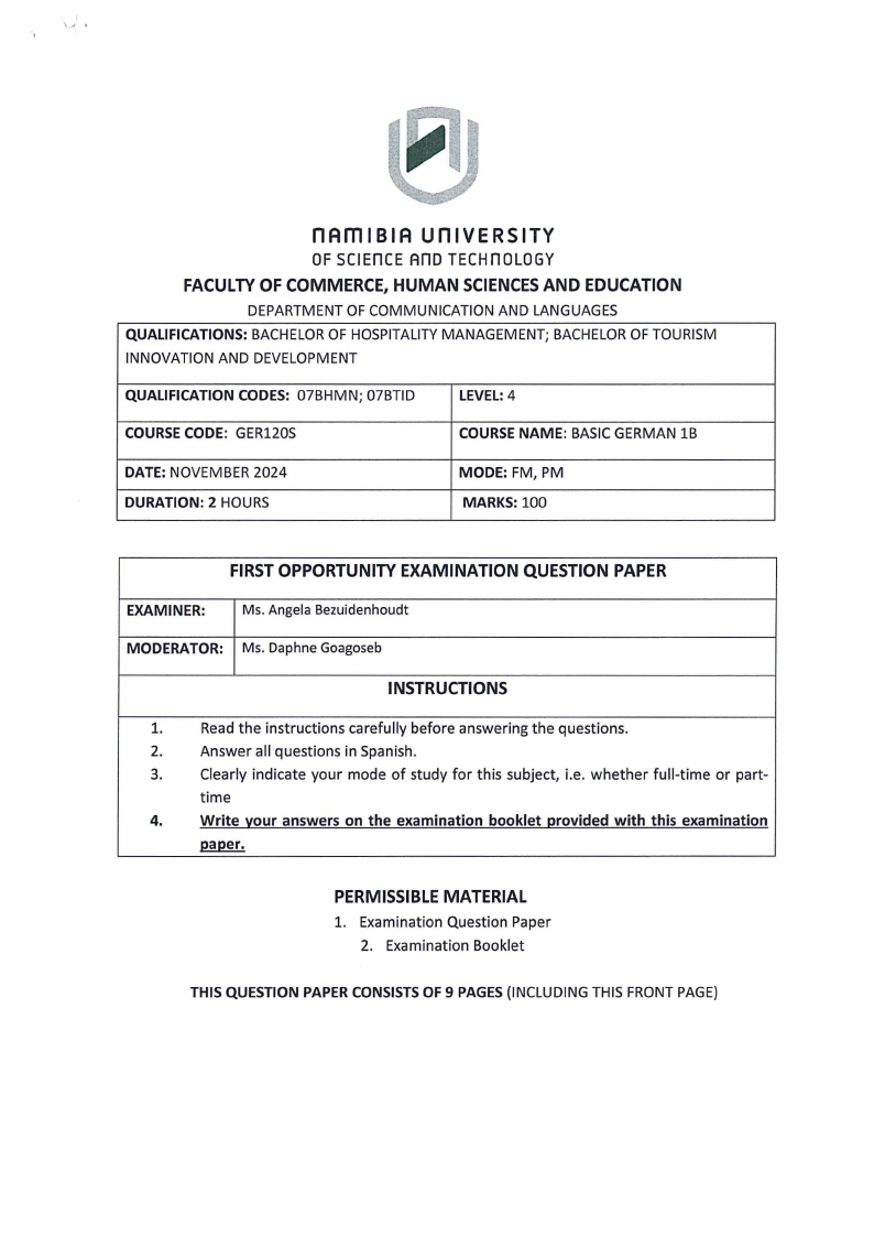 GER120S - BASIC GERMAN 1B - 1ST OPP - NOV 2024 |
