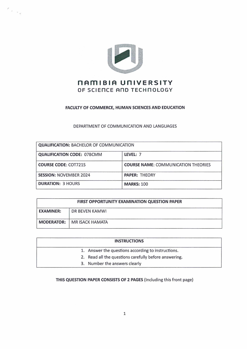FIRSTOPPORTUNITYEXAMINATION QUESTION PAPER