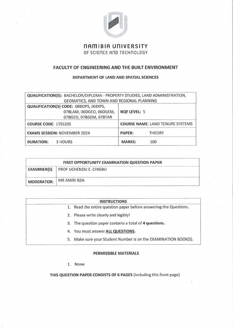 LTS520S - LAND TENURE SYSTEMS - 1ST OPP - NOV 2024