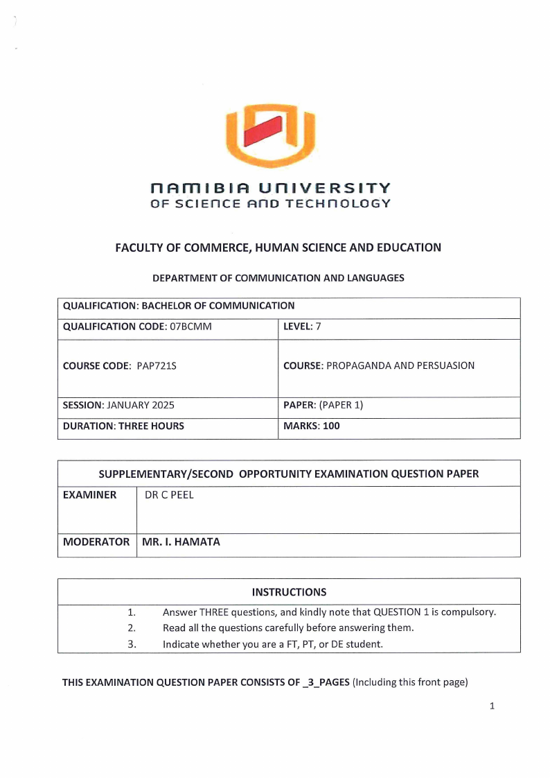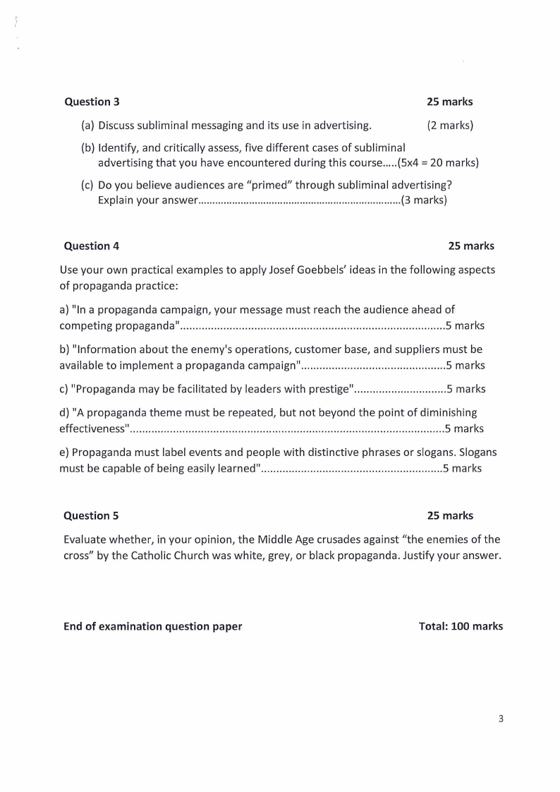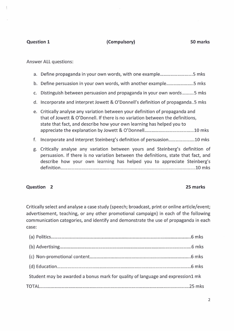 a. Define propaganda in your own words, with one example ...........................5. mks