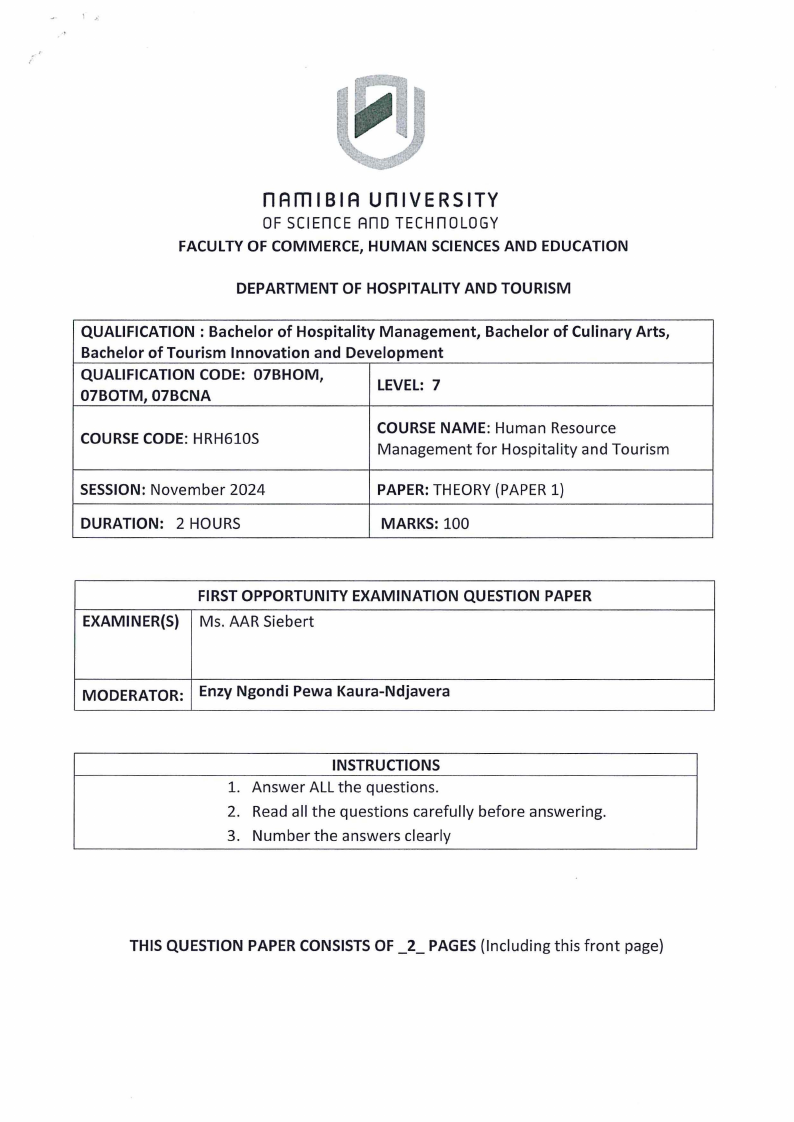 COURSE CODE: HRH610S