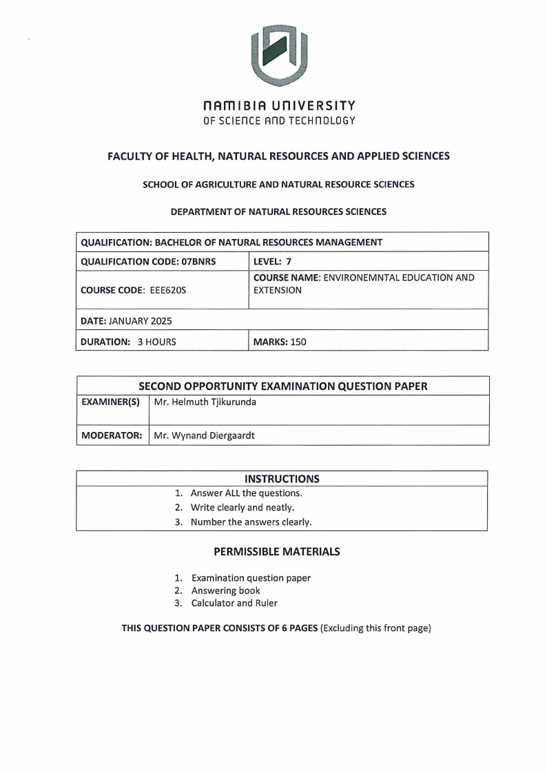 ENVIRONMENTAL EDUCATION AND EXTENTION (EEE621S)