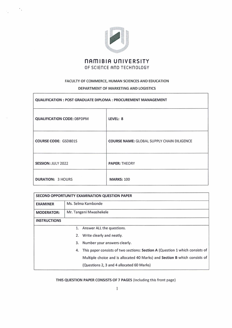 GSD801S - GLOBAL SUPPLY CHAIN DILIGENCE - 2ND OPP - JULY 2022 |