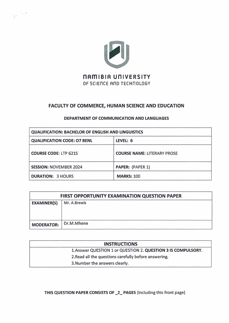 COURSE NAME: LITERARYPROSE