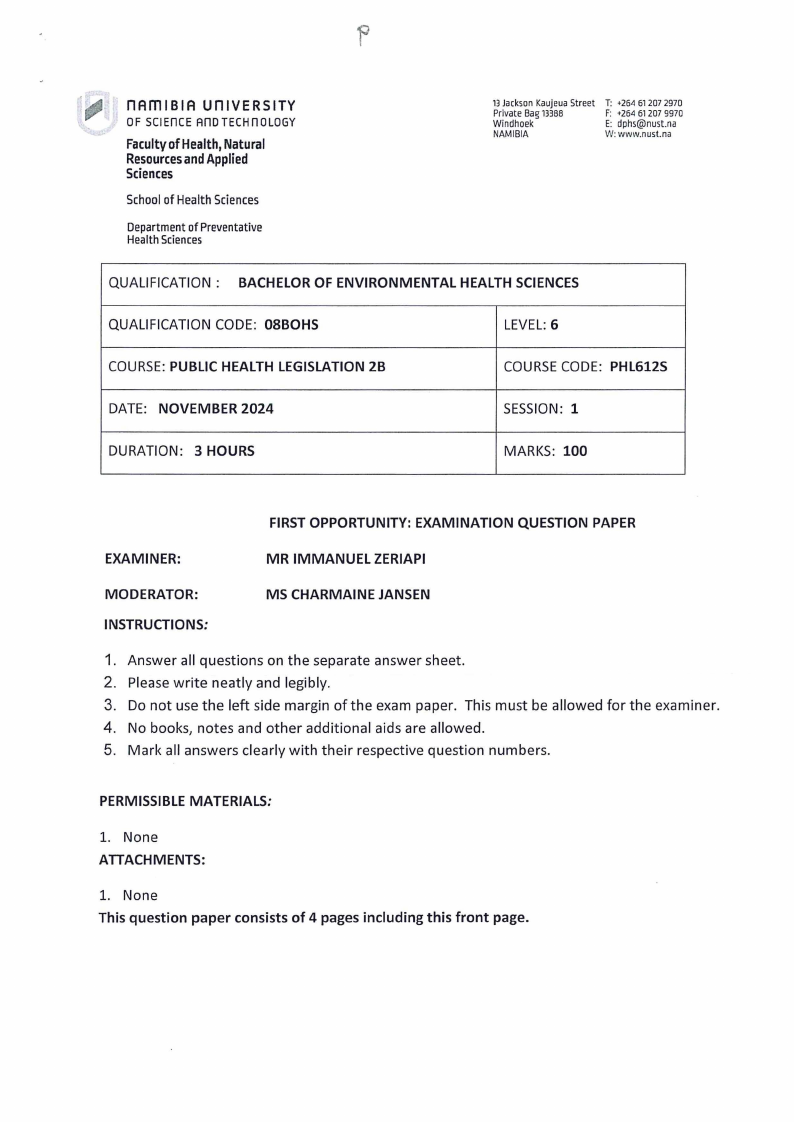 and environmental health system in Namibia.