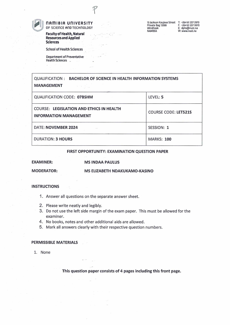 LEGISLATIONAND ETHICSIN HEALTH INFORMATION MANAGEMENT (LET521S)