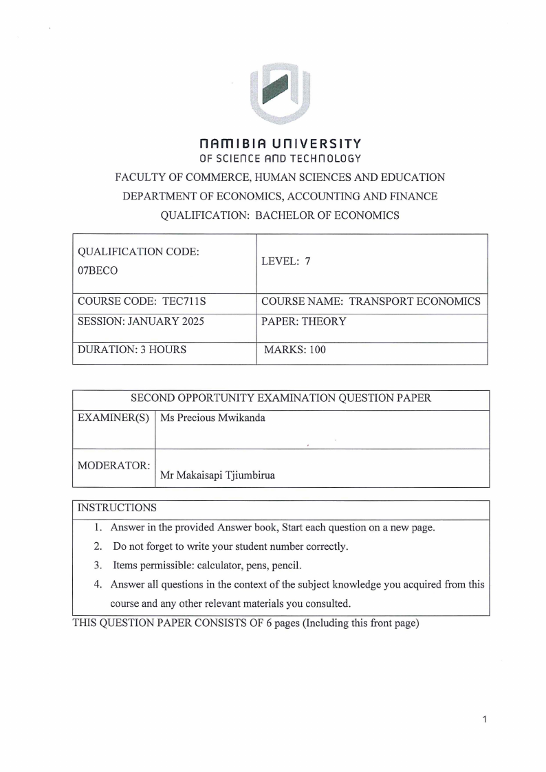 TEC711S-TRANSPORT ECONOMICS-2ND OPP-JAN 2025