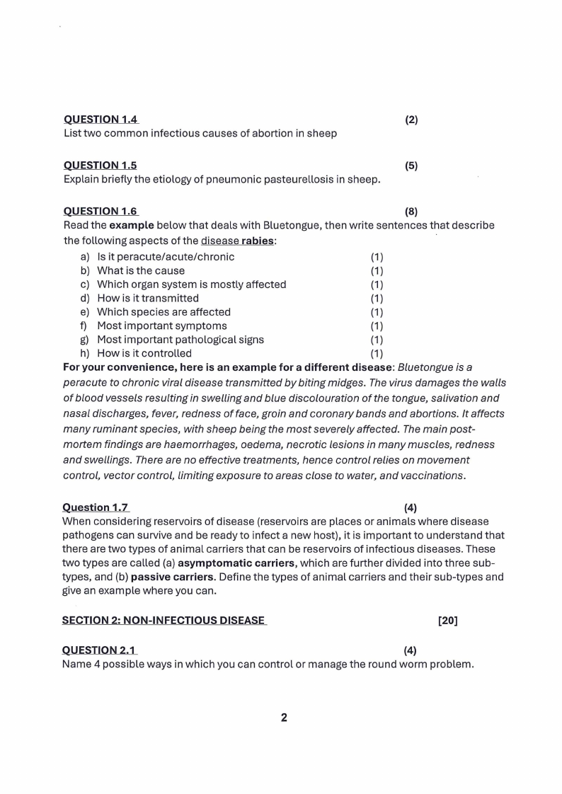 Read the example below that deals with Bluetongue, then write sentences that describe