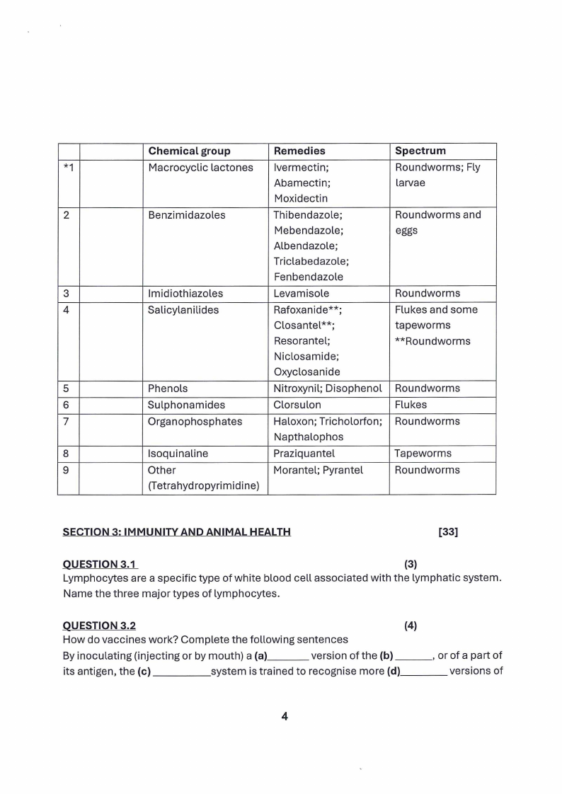 Name 4 possible ways in which you can control or manage the round worm problem.