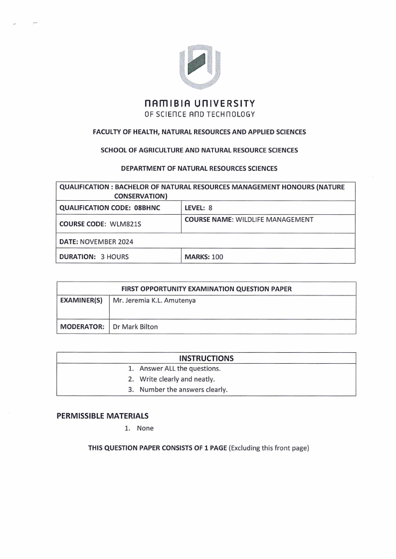Discuss wildlife as an economic commodity in Namibia. Refer to the following using (20)