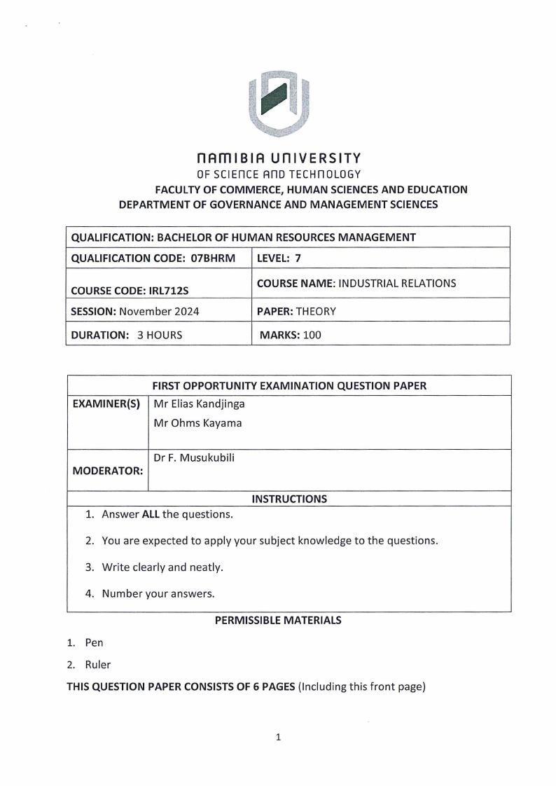1. The case study above signposted three (3) actors in a Tripartite Employment