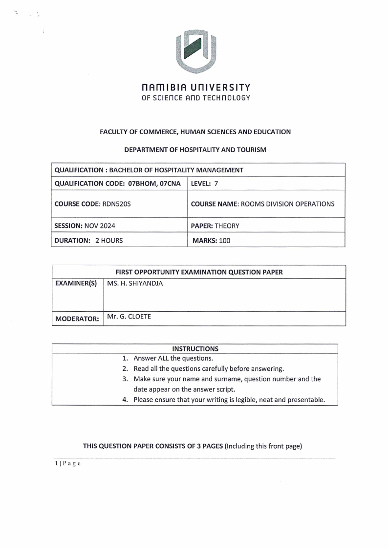 RDN520S - ROOMS DIVISION OPERATIONS - 1ST OPP - NOV 2024 |