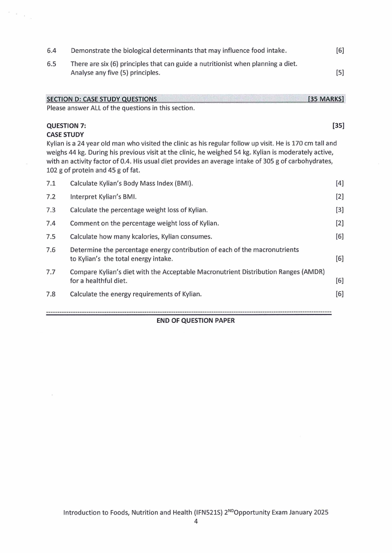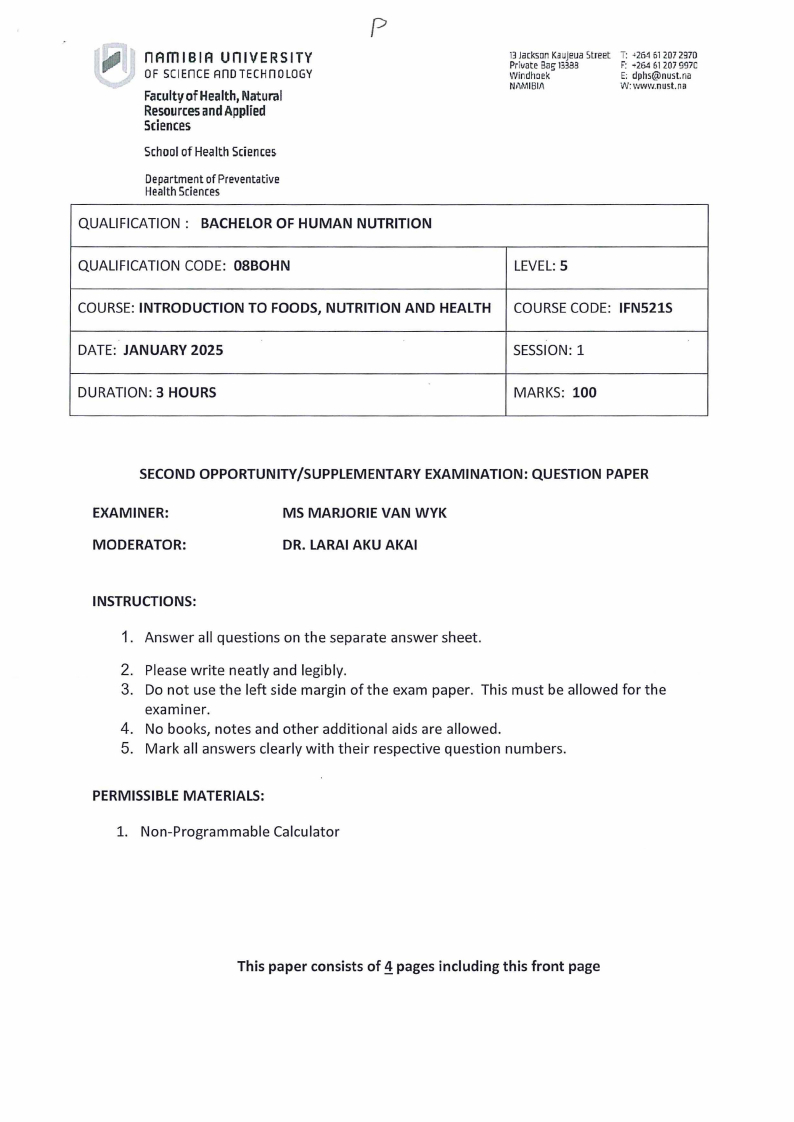 Introduction to Foods, Nutrition and Health (IFN521S)2N°Opportunity ExamJanuary 2025