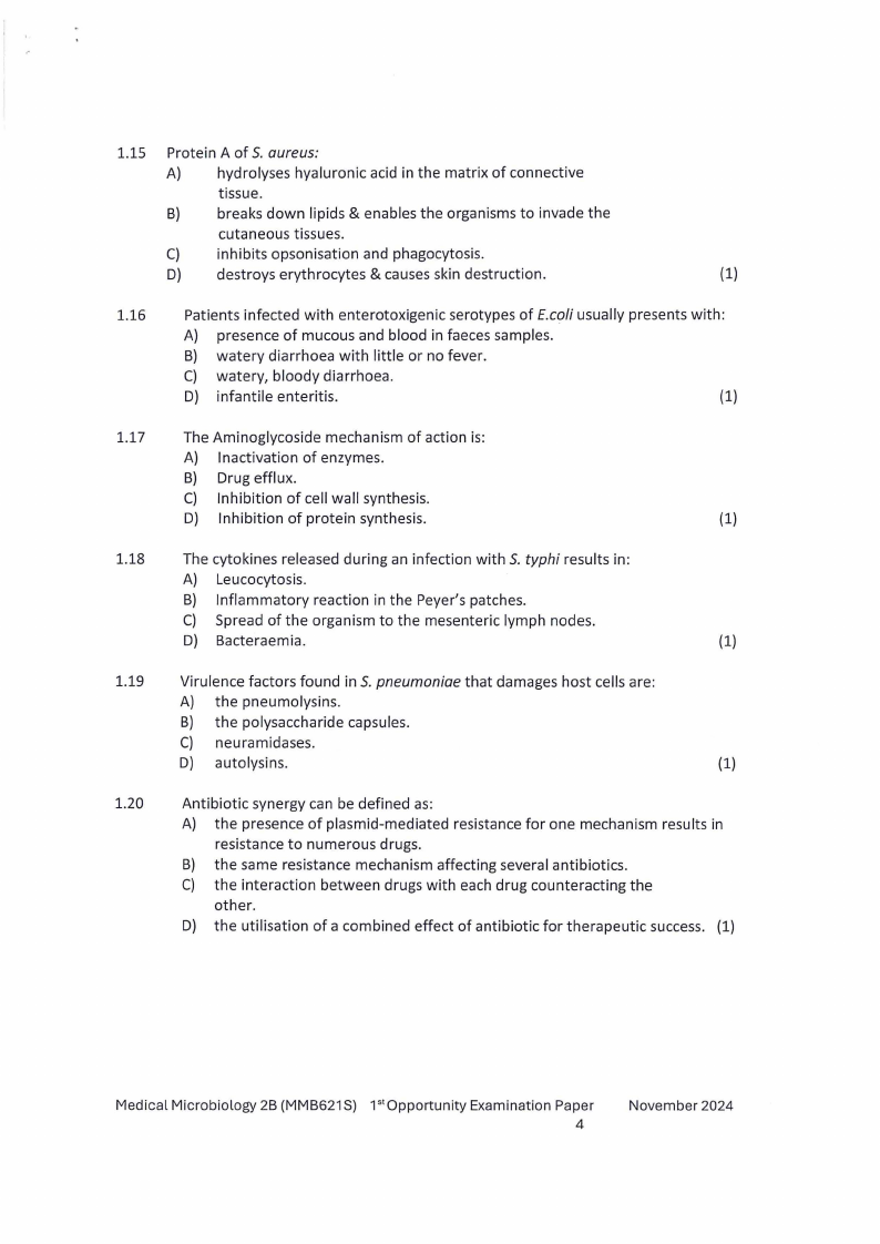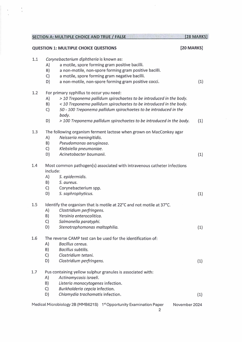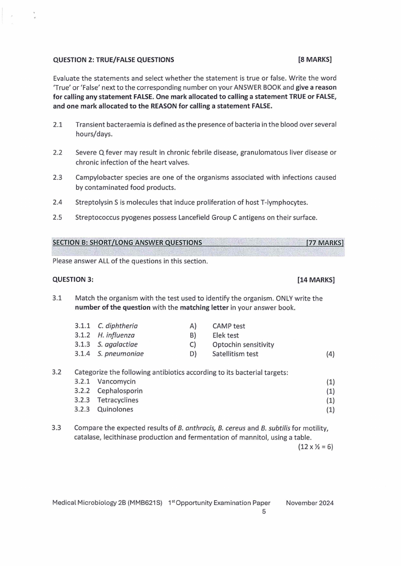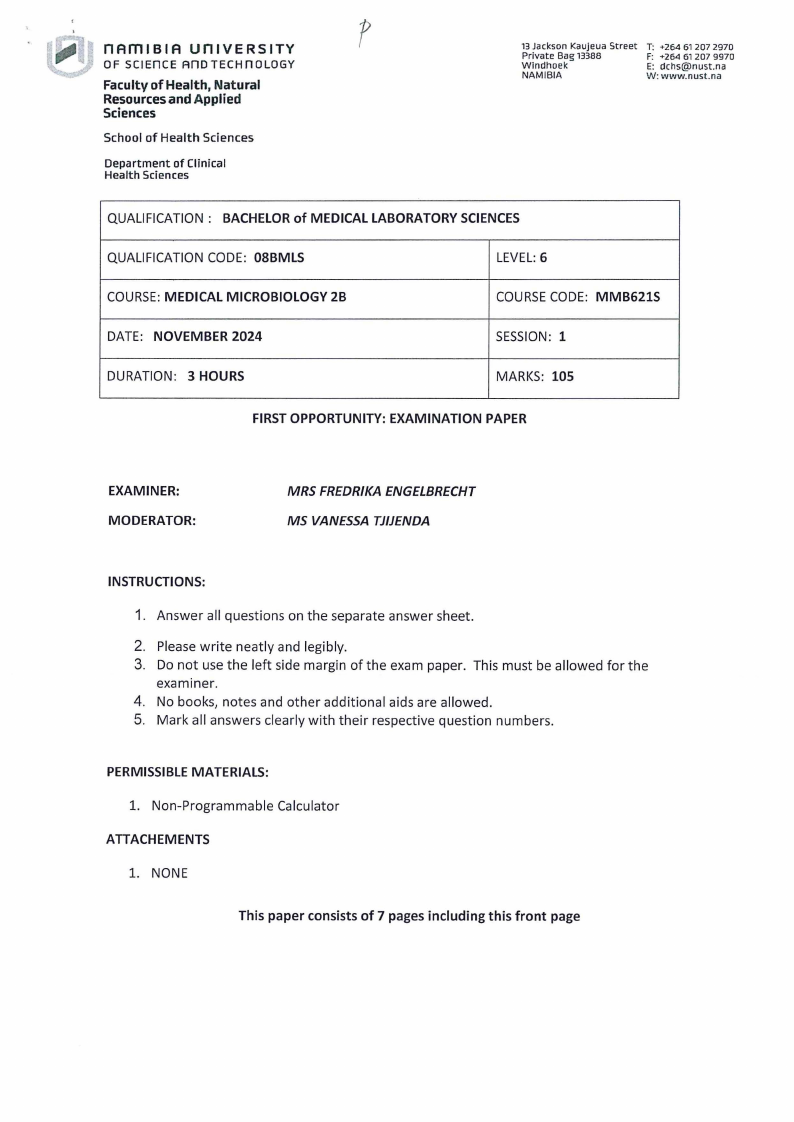 MMB621S - MEDICAL MICROBIOLOGY 2B - 1ST OPP -NOVEMBER 2024 |