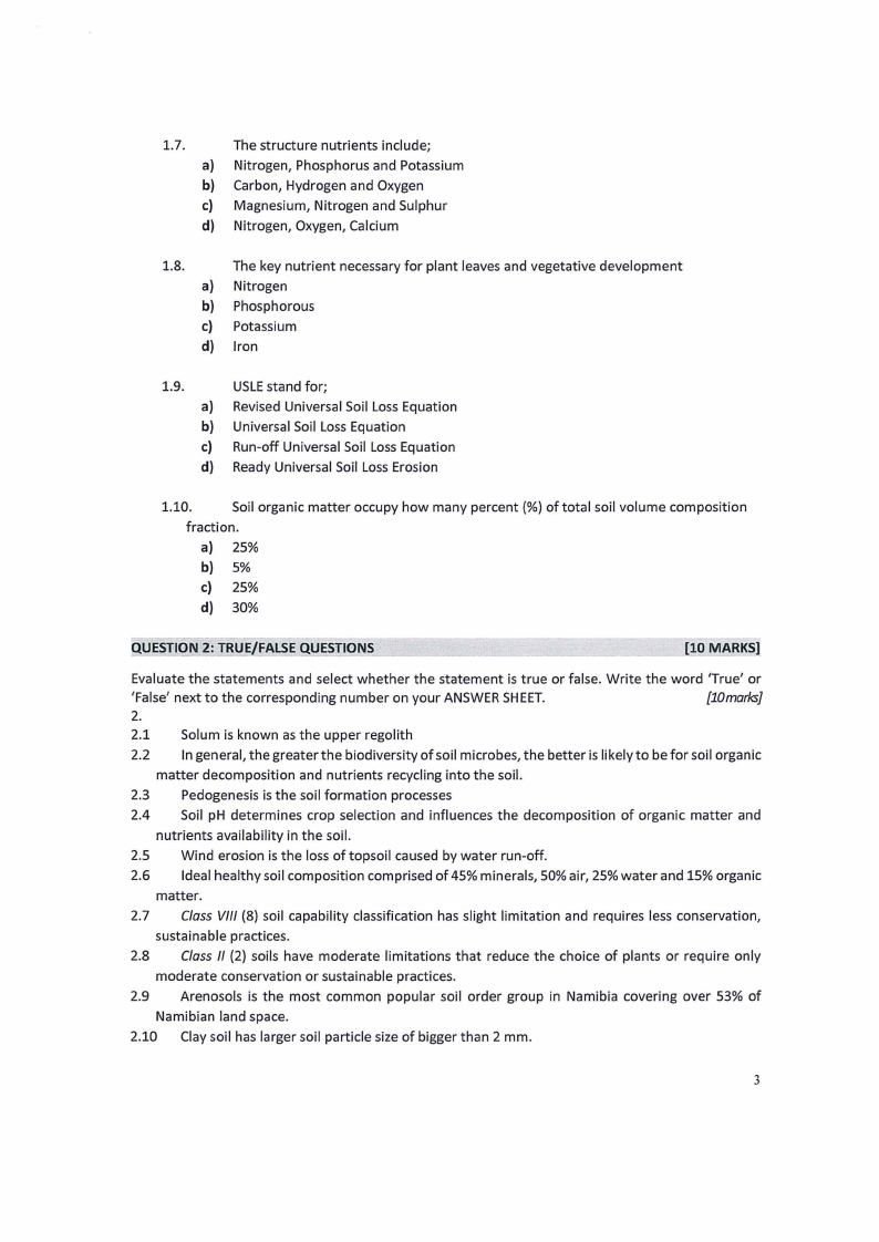 2.5 Wind erosion is the loss of topsoil caused by water run-off.