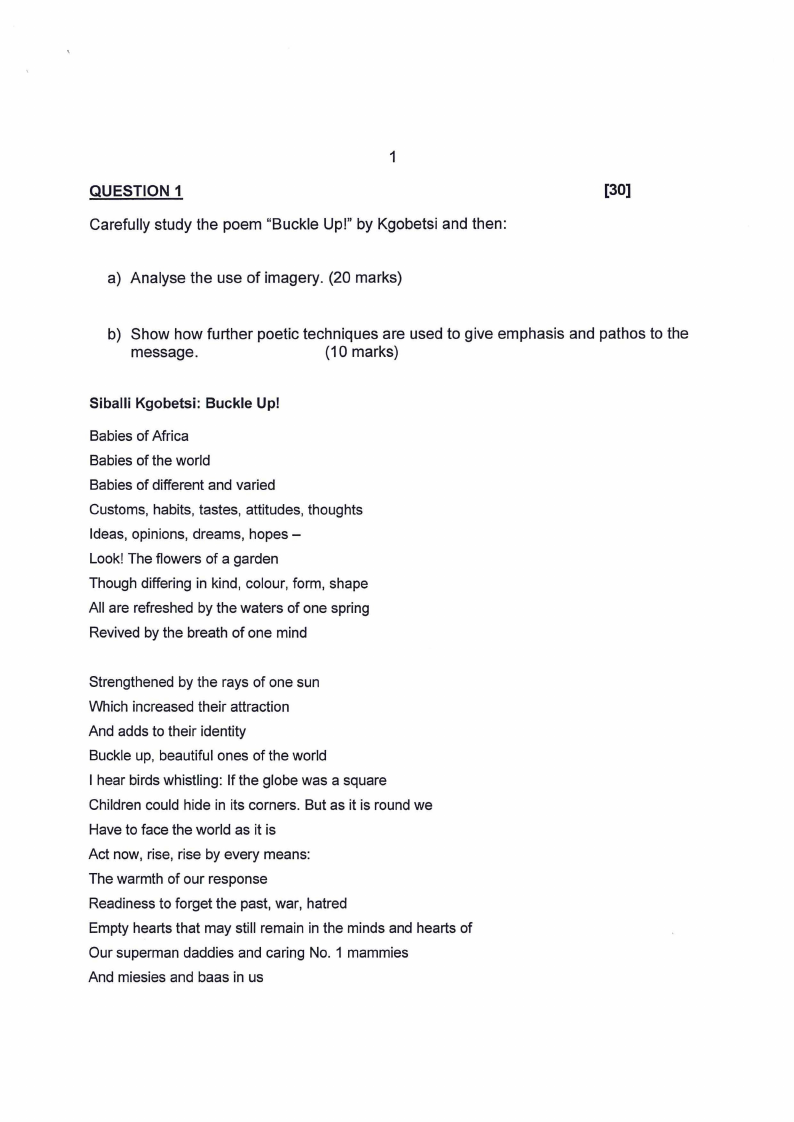 Carefully study the poem "Buckle Up!" by Kgobetsi and then: