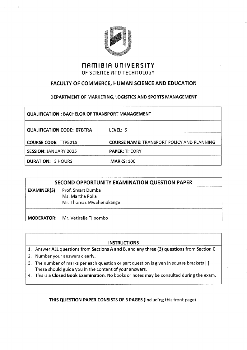 TTPS521S - TRANSPOT POLICY AND PLANNING - 2ND OPP - JANUARY 2025