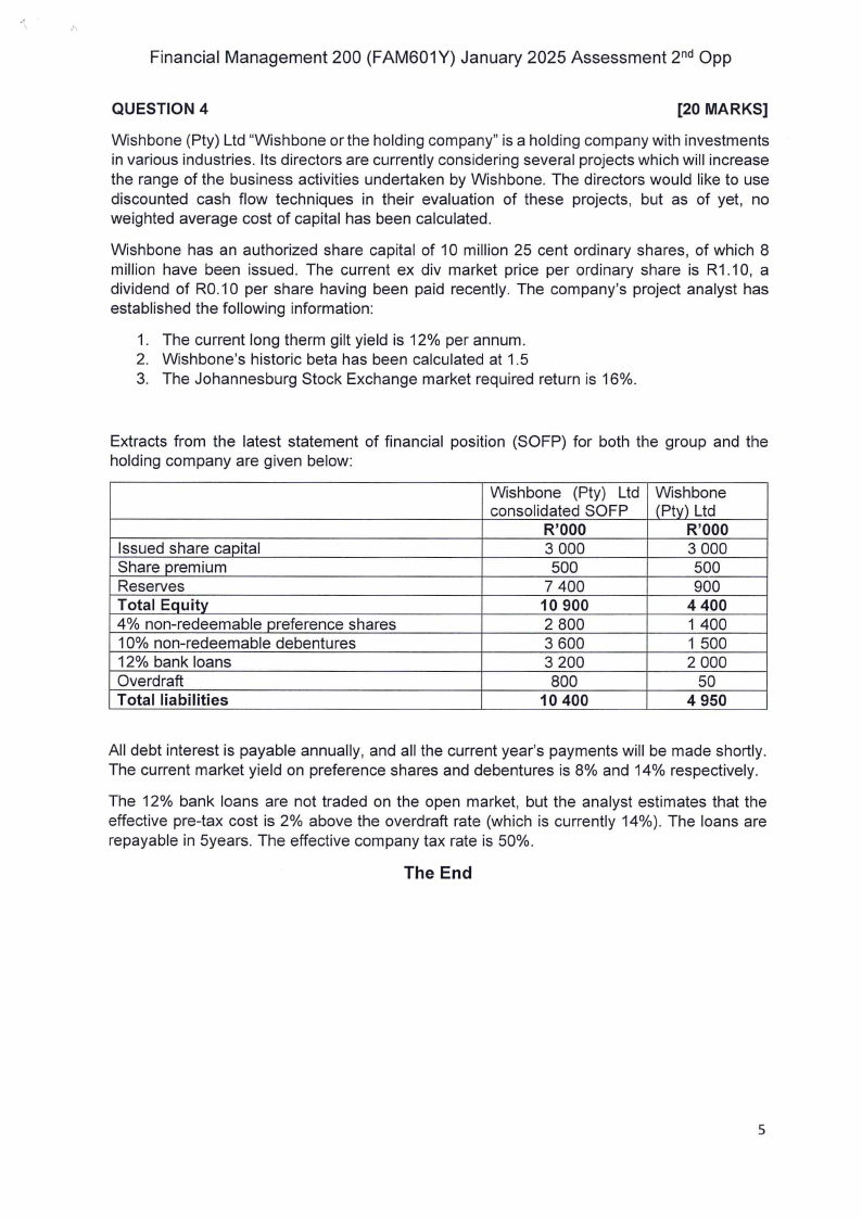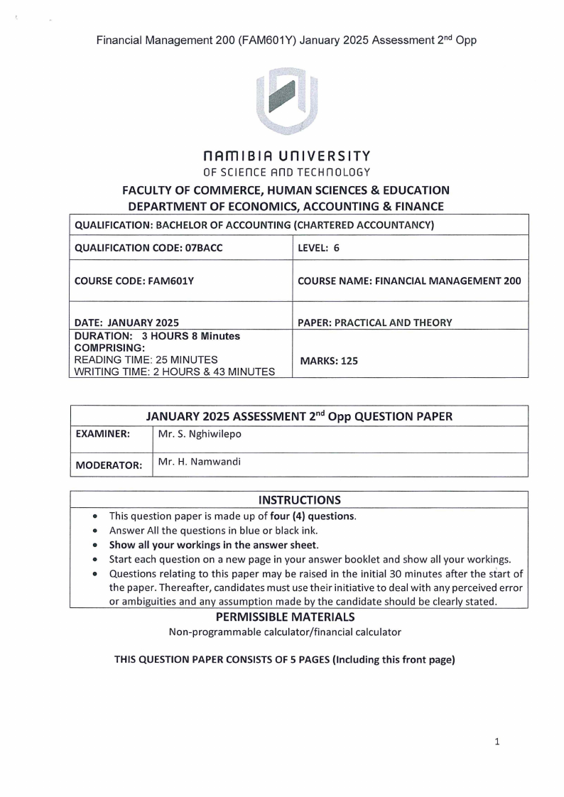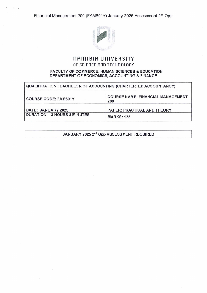 Financial Management 200 (FAM601Y) January 2025 Assessment 2nd Opp