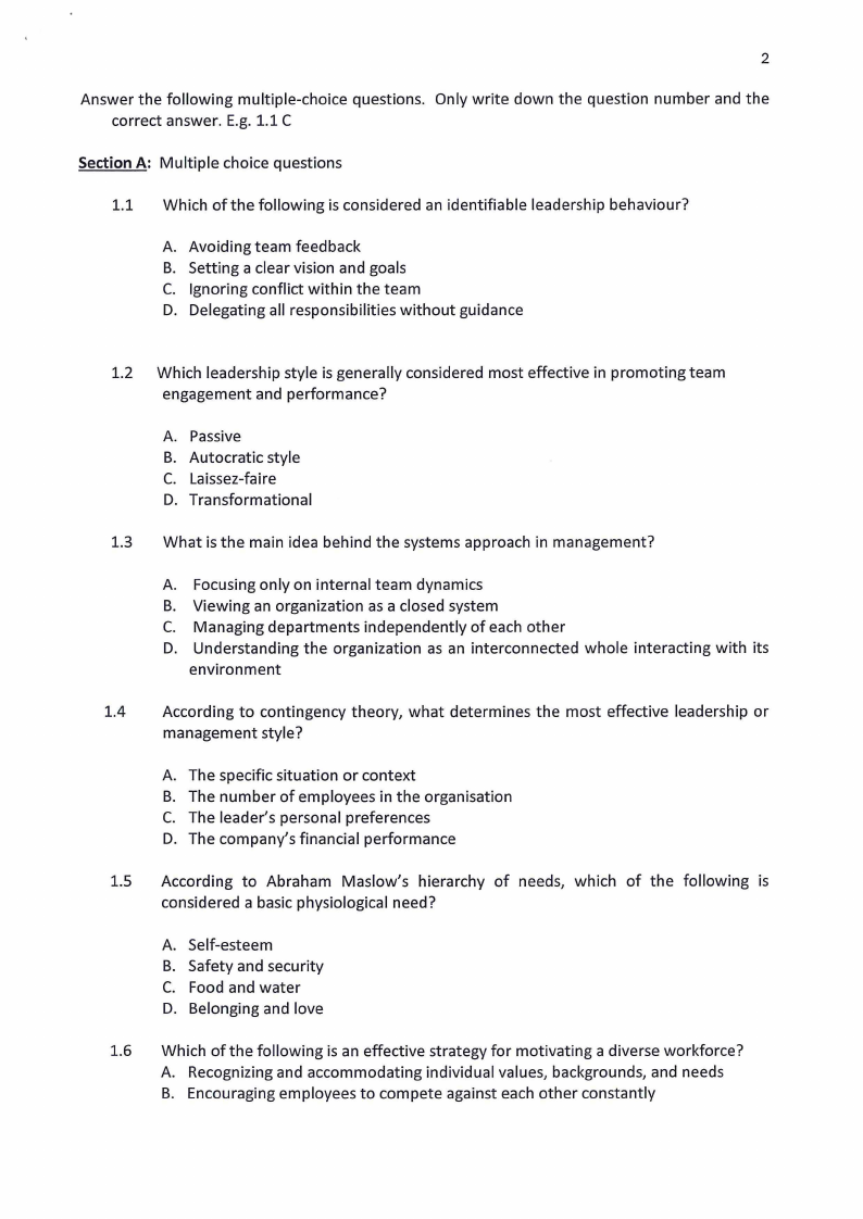 leadership roles? Suggest two measures. {3 marks)