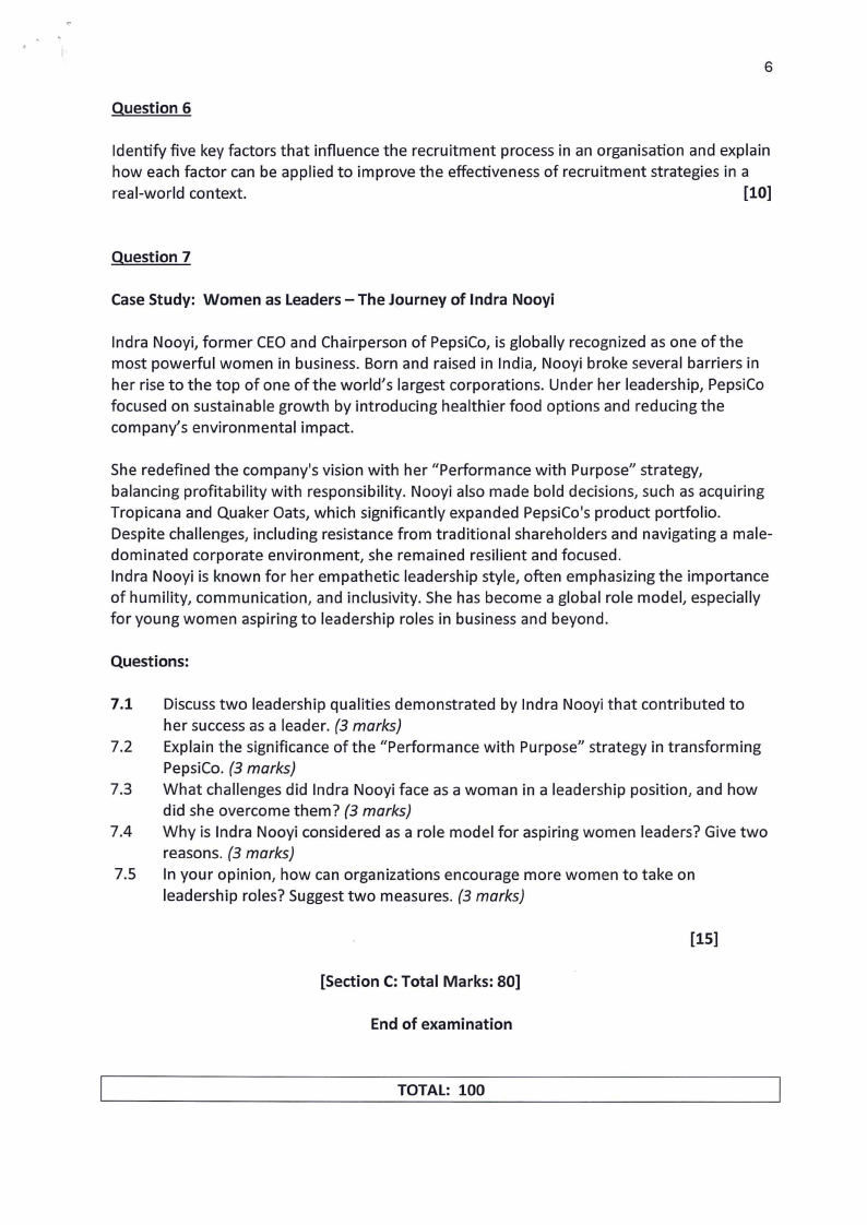 7.1 Discuss two leadership qualities demonstrated by Indra Nooyi that contributed to