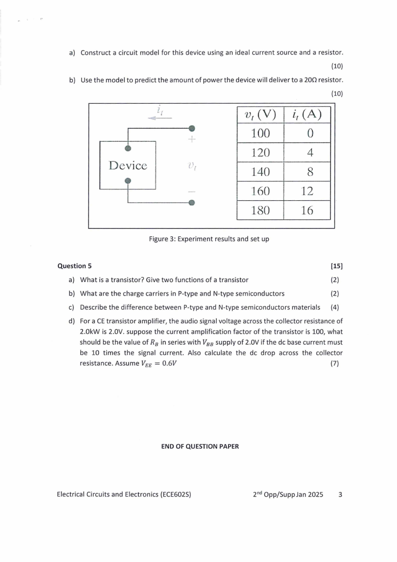 b) Use the model to predict the amount of power the device will deliver to a 200 resistor.