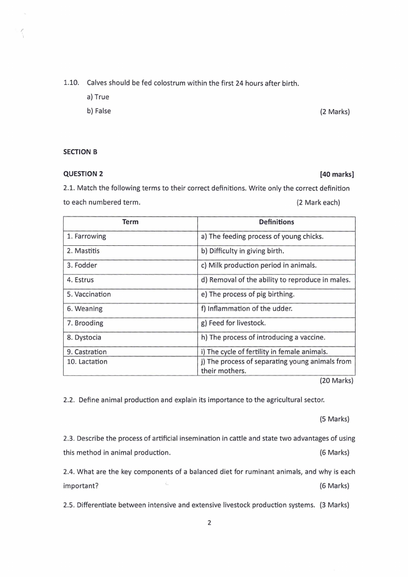 2.5. Differentiate between intensive and extensive livestock production systems. (3 Marks)